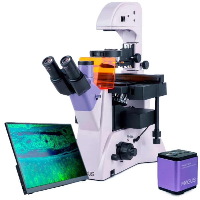 The MAGUS Lum VD500L LCD is a high-performance inverted fluorescence microscope designed for advanced cell biology, biomedical research, and live cell imaging. Equipped with the MAGUS CLM90 7.1MP monochrome digital camera, featuring a two-stage Peltier cooling module, it delivers exceptionally low noise and high-contrast fluorescence images even under minimal illumination. The high-speed USB3.0 interface ensures smooth live video streaming up to 133.8 fps, enabling precise monitoring of dynamic samples.