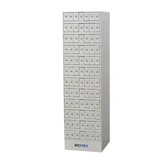 The SCITEK Slide Cabinet SC-101 / SC-101L is designed for safe and efficient storage of a large number of microslides in laboratory and academic environments. The body is made of sturdy metal with a powder-coated finish, providing excellent corrosion resistance and durability.