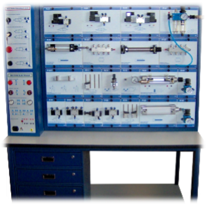 The Italtec IT.EPT402T is a mobile educational workstation designed for training and hands-on exercises in pneumatics and electropneumatics. It allows two students to work simultaneously, building, analyzing, and testing real pneumatic circuits in a safe and interactive environment.