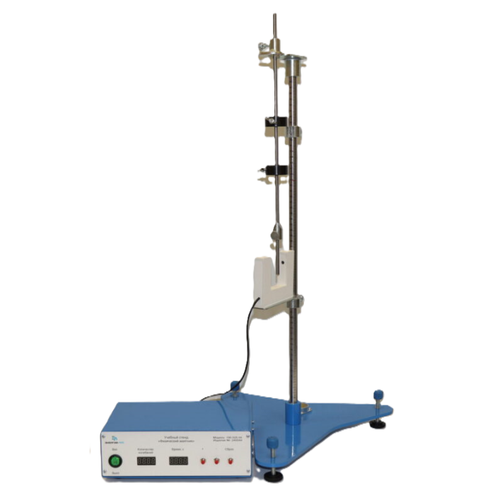 The setup includes a rigid frame, suspension, replaceable weights, and measuring elements, which allow a wide range of laboratory experiments in mechanics. It is widely used in universities, colleges, and specialized laboratories, helping students clearly understand the fundamental laws of dynamics.