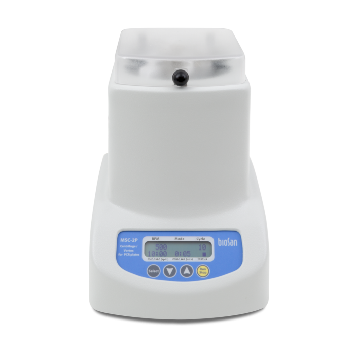 The MSC-2P Minicentrifuge-Vortex for PCR Plates by Biosan is a specialized laboratory instrument designed for rapid sedimentation and efficient mixing of samples directly in PCR plates. It is optimized for 96-well PCR plates and microplates, making it an essential tool for molecular biology and diagnostic laboratories.